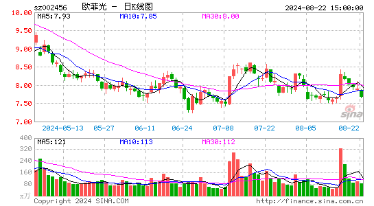 欧菲光股票代码:sz002456